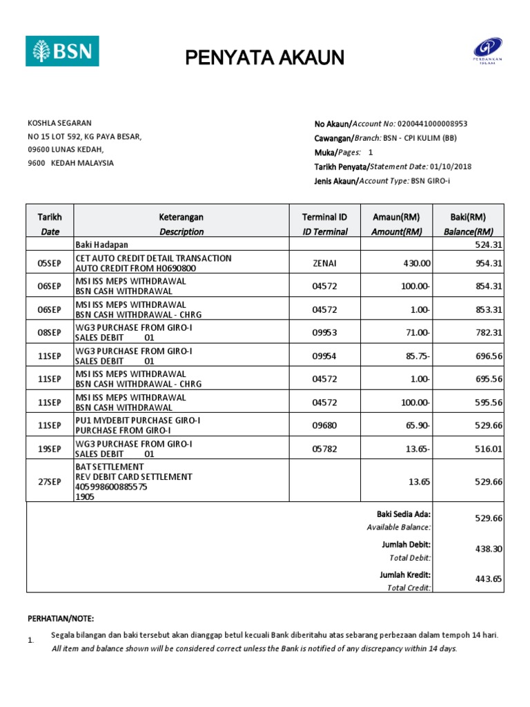 NerdWallet Makes Finding The Best Online Savings Bank Easy. CARA DAPATKAN MUAT TURUNDOWNLOAD PENYATA AKAUN BSN. This template is an editable sample of Malaysia BSN bank account statement penyata akaun in doc andpdf format.