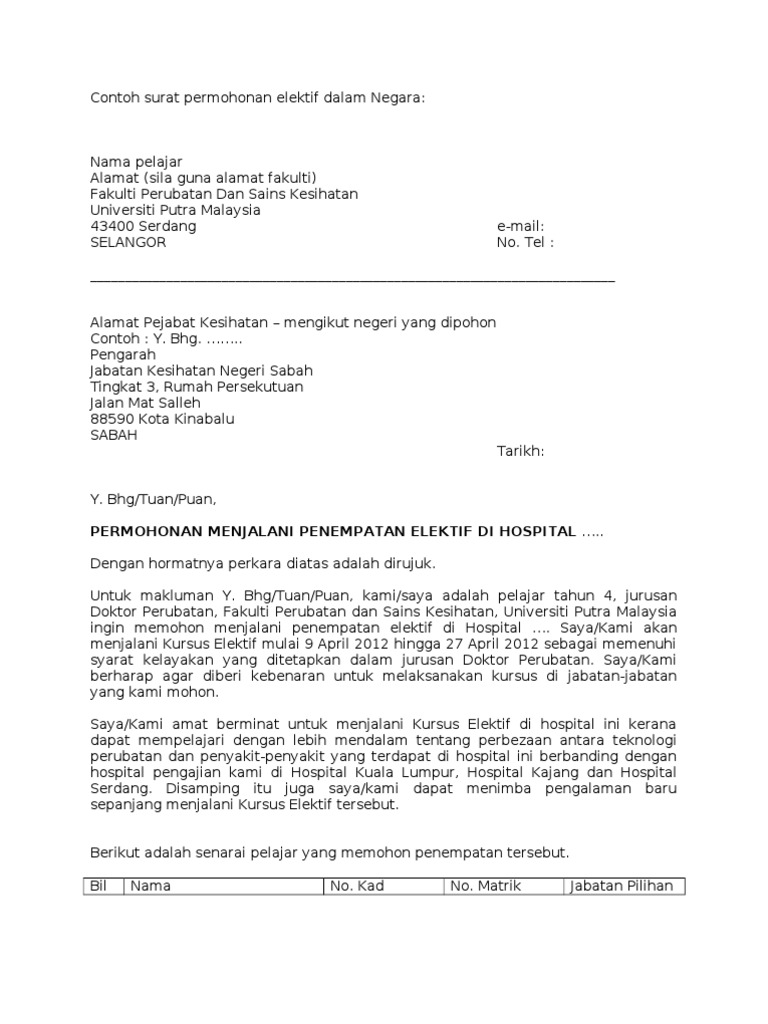 Contoh Surat Permohonan Elektif Dalam Negara Kepada Pelajar Pdf
